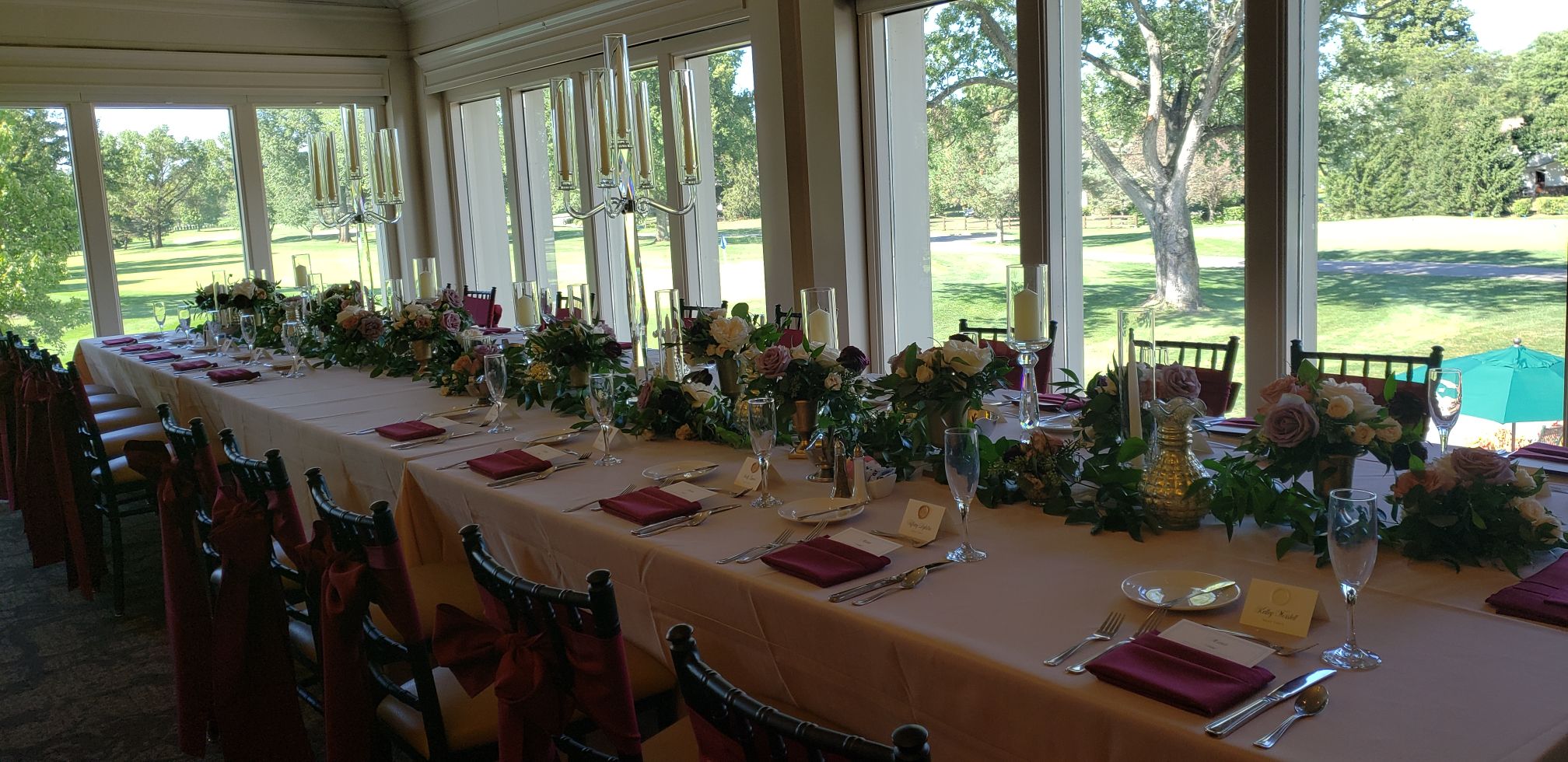 Our grand ballroom offers a stunning backdrop, featuring vaulted ceilings and expansive windows overlooking the golf course. Filled with natural light and finished in timeless, neutral tones, the space is designed to complement any style—from understated and classic to fully customized and elaborate.
